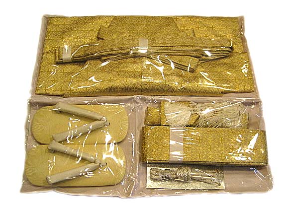 【セット内容】金襴地紋袴 雪駄 角帯 懐剣 お守り袋 末広(扇子) 羽織紐